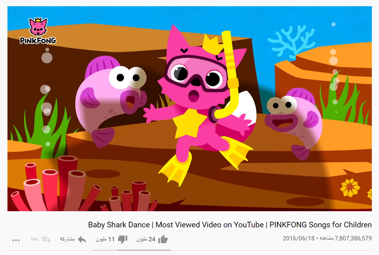 baby shark الأغنية الأكثر مشاهدة في تاريخ يوتيوب الوطنية للإعلام